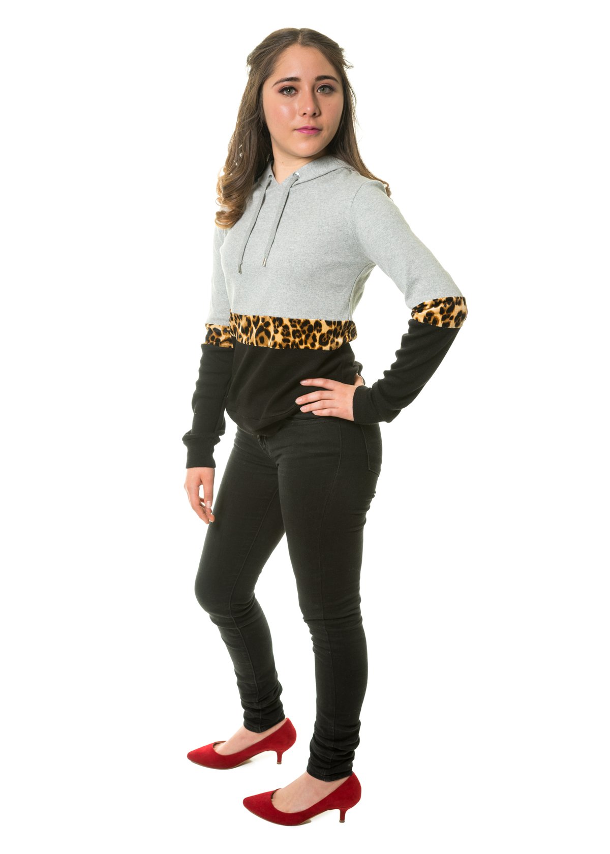 Sudadera tricolor con estampado de animal prin en el medio y con capucha, perfecta para el tiempp de frío y para un look relajado y casual.