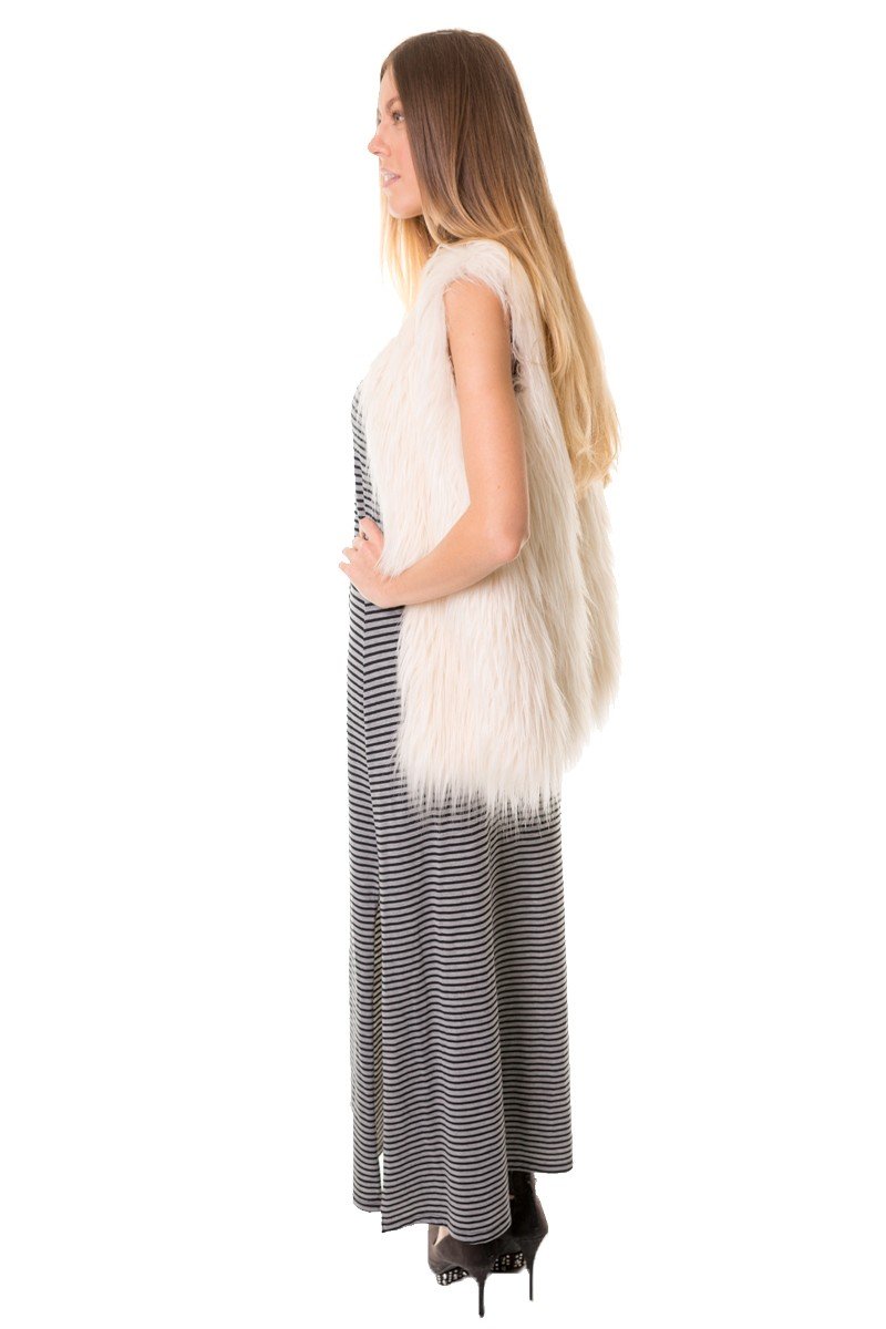 Ideal para un atuendo casual con un toque formal. Vestido largo a rayas, ligero, con abertura amplia el cómplice perfecto para estilizar tu figura.