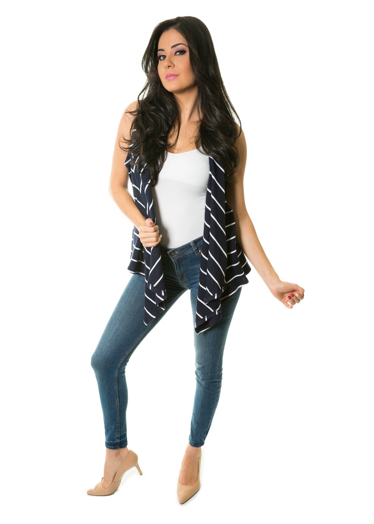 Chaleco con estampado a rayas, ligera diferencia de tamaño en la parte inferior frontal, esta prenda es el toque perfecto para cualquier outfit casual, ideal para combinar con prendas lisas, te da un aspecto relajado y te hará sentir fresca.