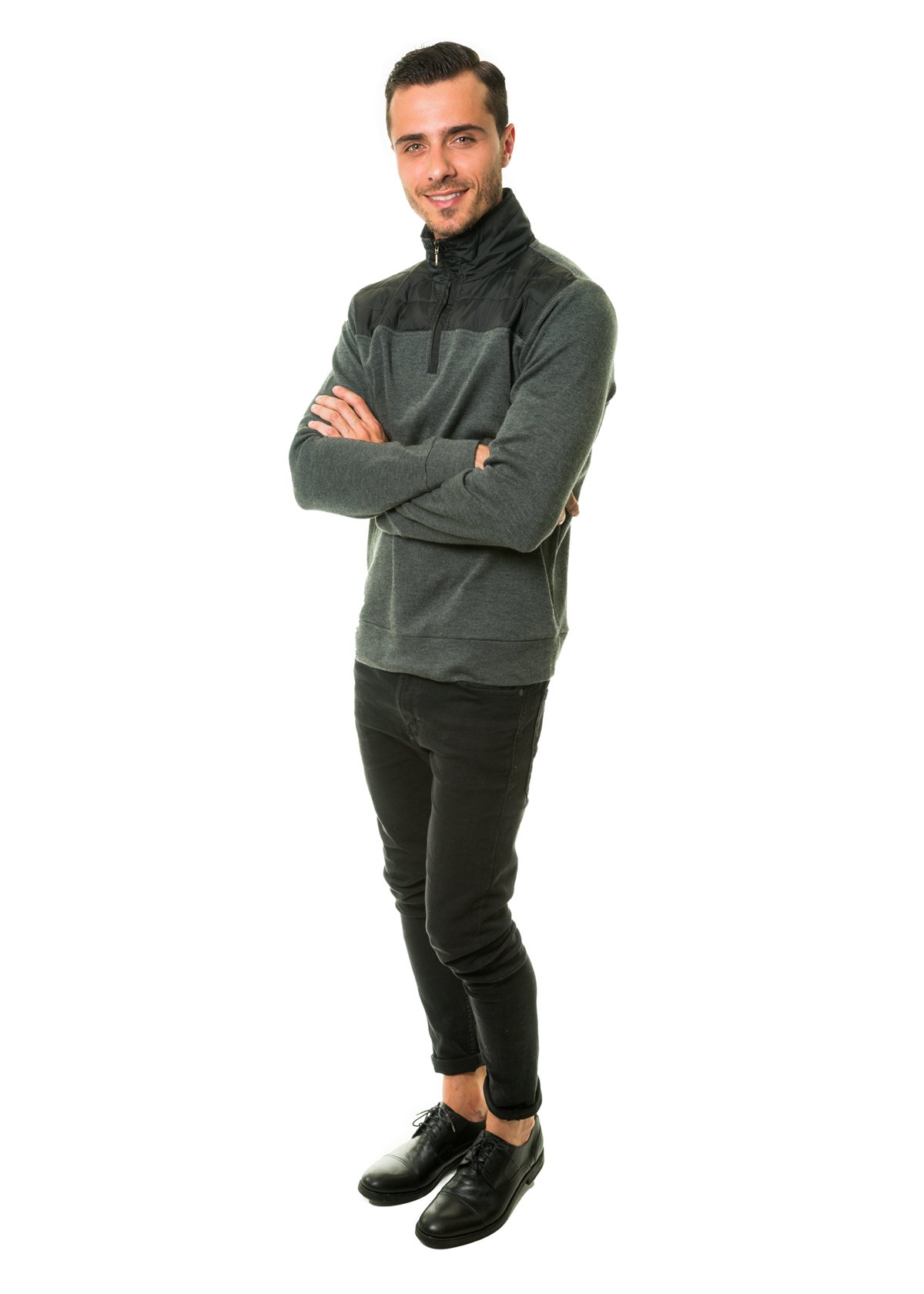 Súeter pegado con capitonado en la parte superior con un ligero cuello alzado y un pequeño cierre, muy cómodo e ideal para lucir un look relajado y que es combinable con todo tipo de ropa, es el suéter perfecto para usar todo el día por su tela abrigadora pero ligera.