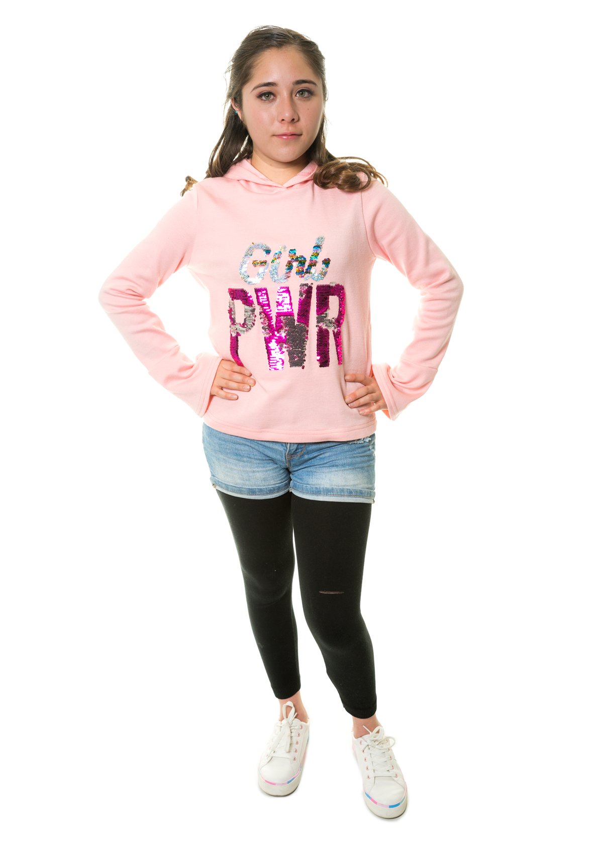 Sudadera amplia y cómoda adornada con lentejuelas en el centro que pueden cambiar de color al cambiar su sentido, las lentejuelas son el toque ideal de esta prenda brindandote un look muy moderno.