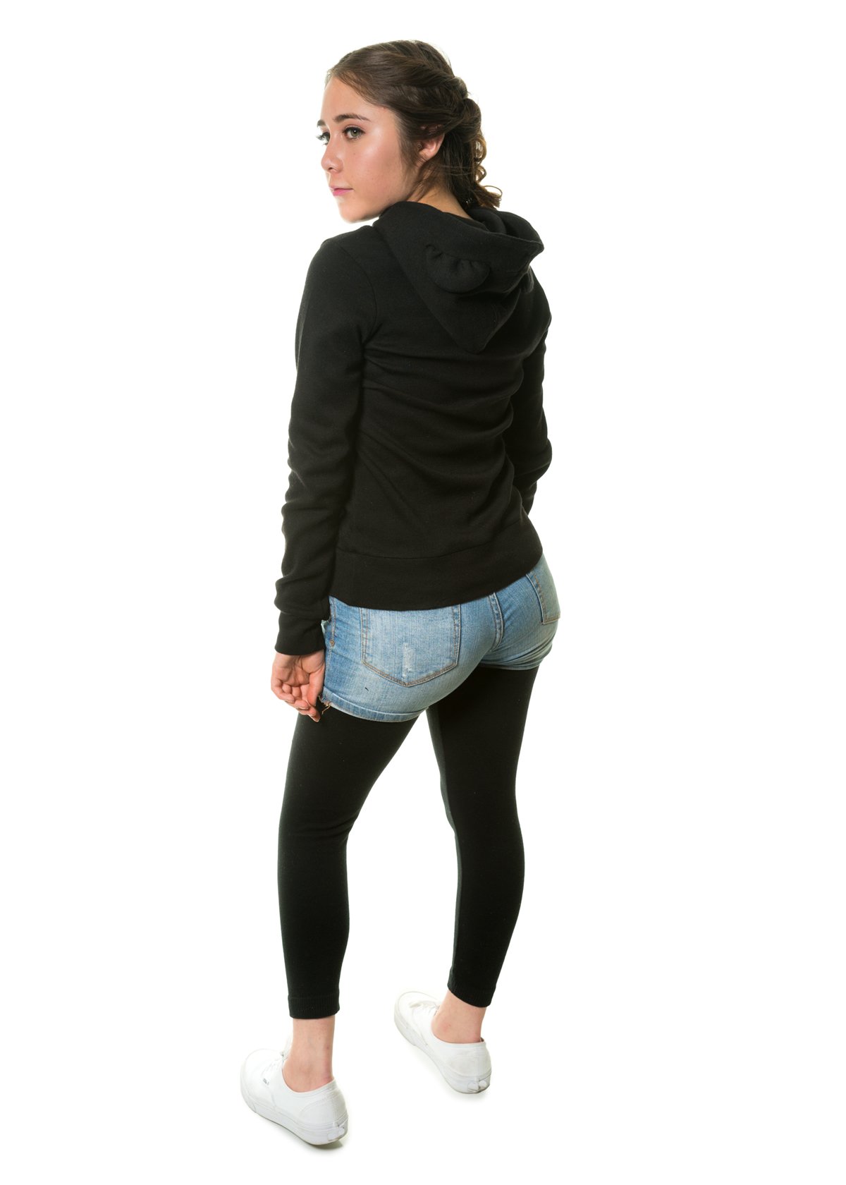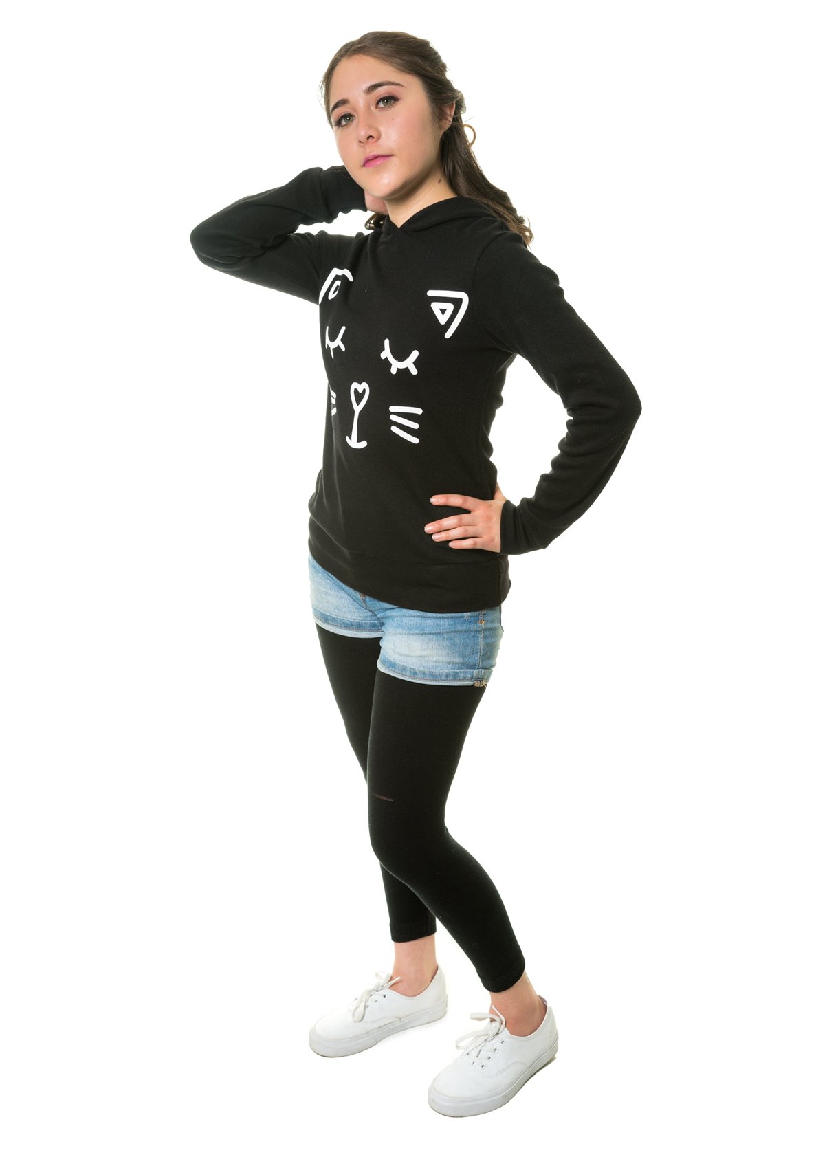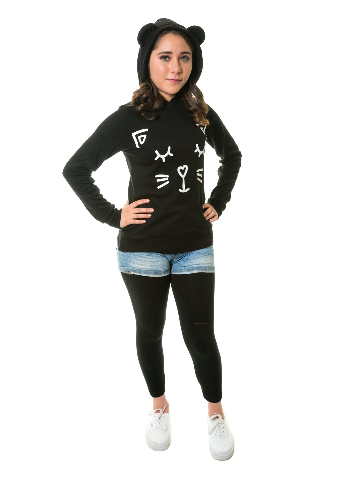 Linda sudadera con capucha con detalles en forma de oreja y estampado en el centro, tela cómoda y suave, perfecta para cualquier ocasión.