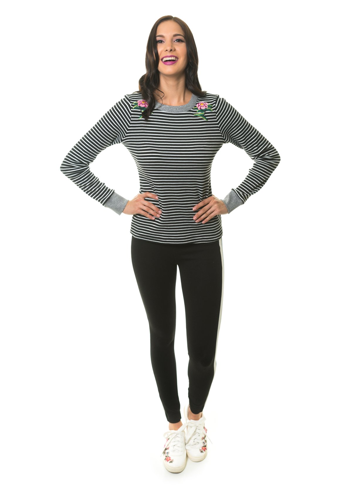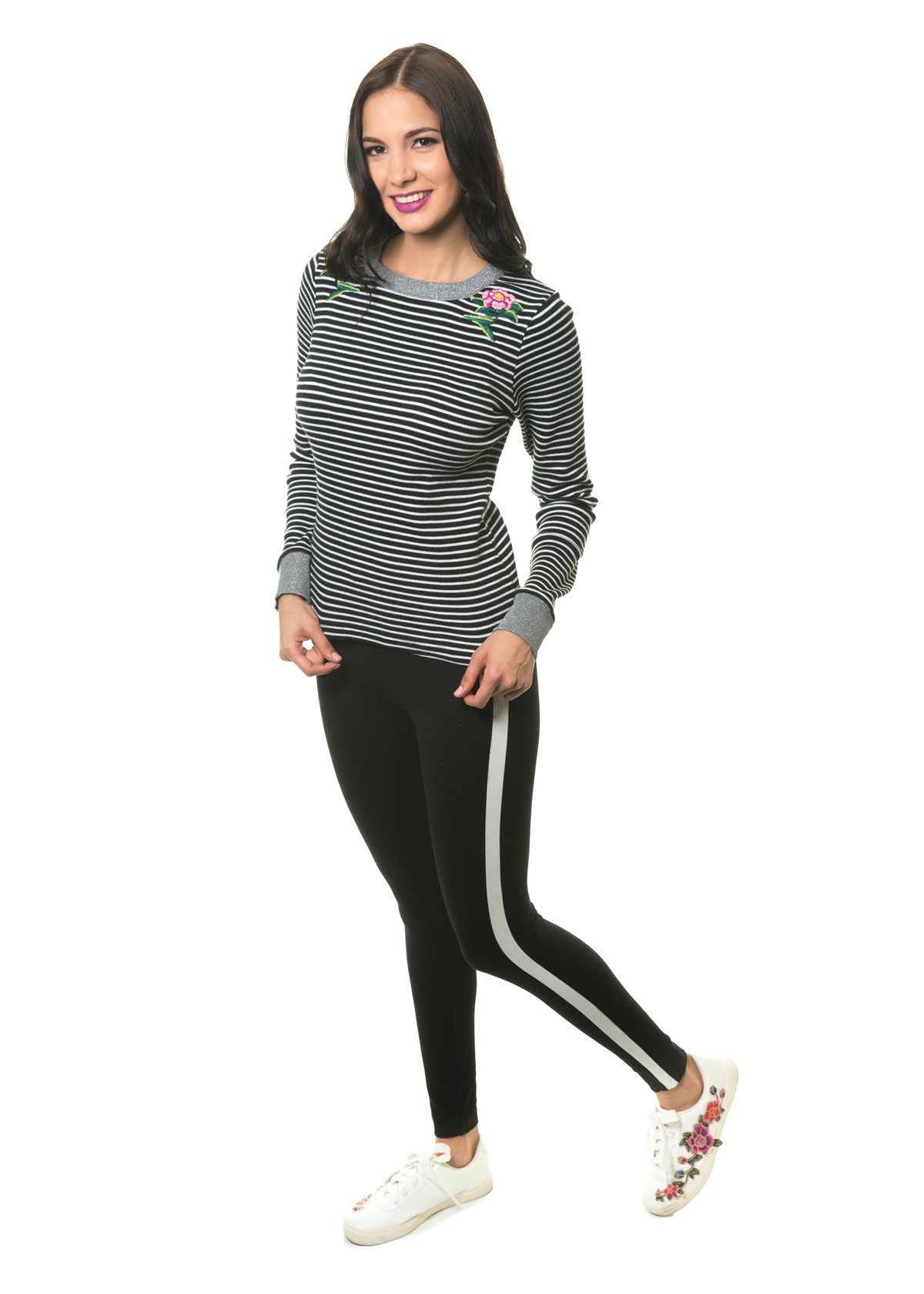 Sudadera moderna con estampado a rayas y detalles en los hombros, ideal para un look relajado y casual, por el diseño y el corte te hará sentir cómoda y abrigada sin dejar de darte una forma espectacular.