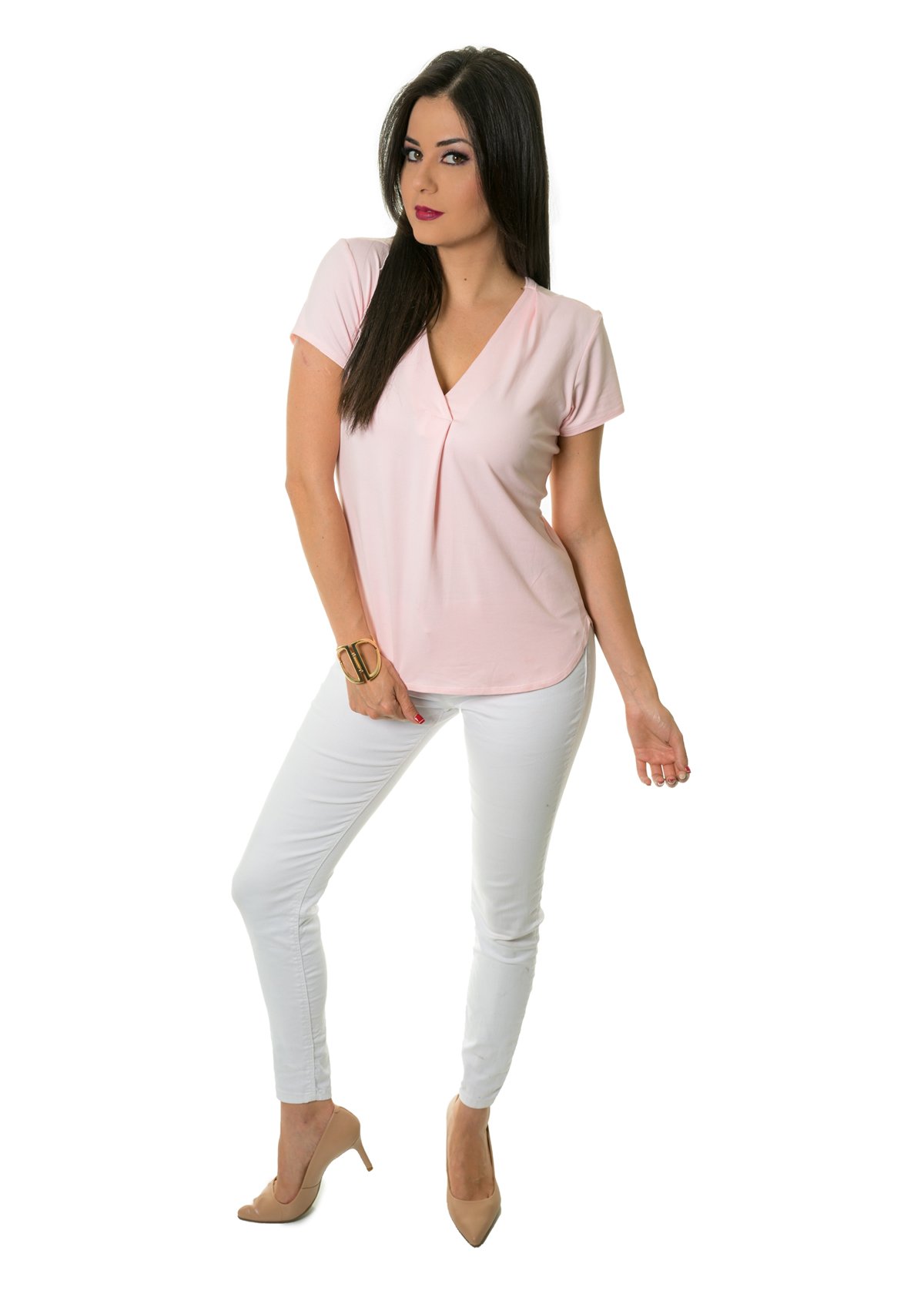 Blusa lisa con ligero pliege en el medio, ligero escote en v y manga corta, perfecta para combinar con cualquier prenda adicional, te dará un look fresco y comfortable, ideal para cualquier ocasión.